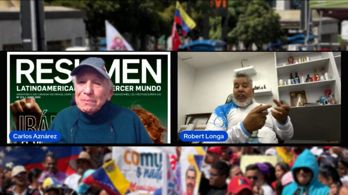 El referente de la Comuna venezolana El Panal y de la Fuerza Patriótica Alexis Vive, Robert Longa, señala al programa televisivo de Resumen Latinoamericano, que el Pueblo venezolano está de pie y va a luchar hasta conseguir traer nuevamente al país al Presidente Nicolás Maduro y a la primera combatiente Cilia Flores. Longa asegura que hay «Chavismo por 100 o 200 años», y que quienes como Trump intentan fracturar la unidad popular, fracasarán.