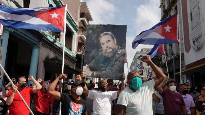 Cubanos en la calle muestran su apoyo y solidaridad con la Revolución cubana a pesar de los ataques de EEUU.