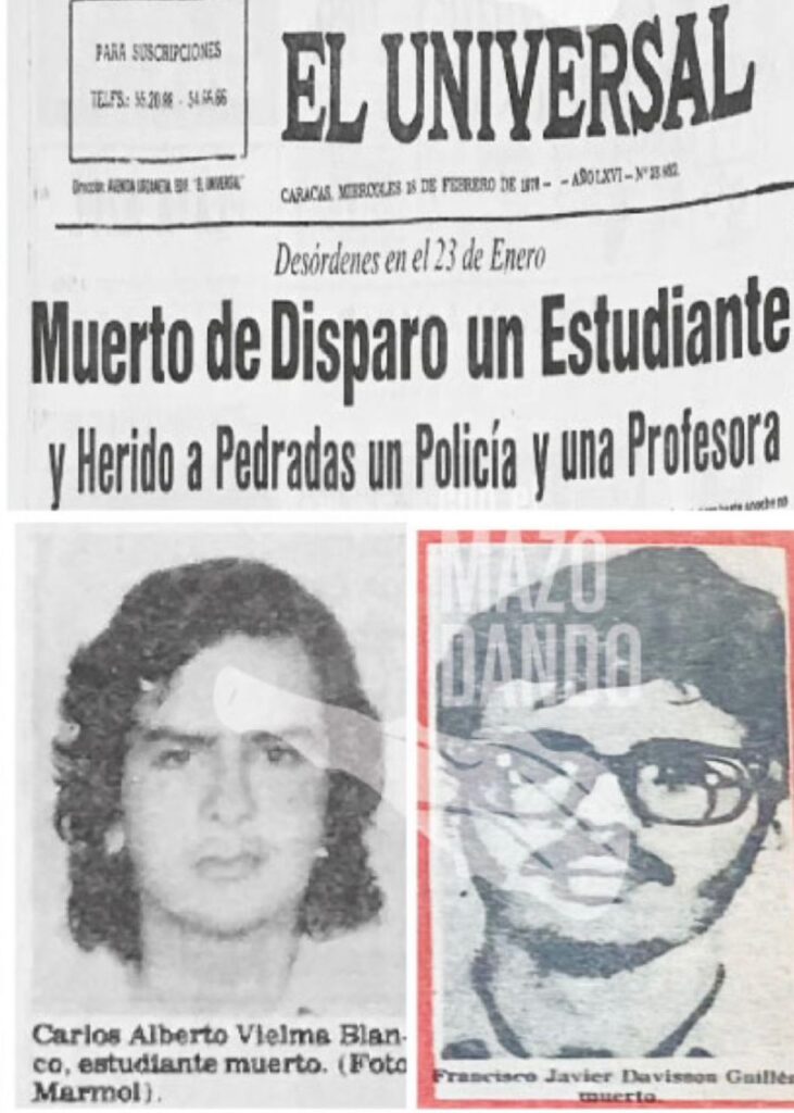 Anterior a este hecho, el 14 de febrero de ese mismo año, ya habían sido asesinados los estudiantes Lilian Gutiérrez (16 años) y Nelson Rodríguez (18 años), en el estado Yaracuy, y para el 25 de julio seria asesinado Jorge Rodríguez, Secretario General de la Liga Socialista, por la extinta DISIP.