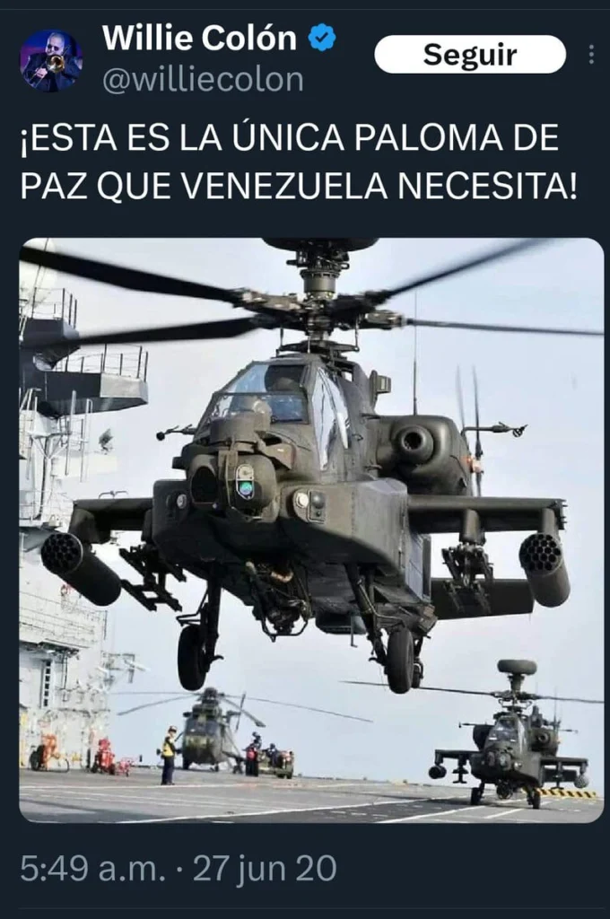 Willie Colón persistió pidiendo una invasión militar gringa a Venezuela y hasta grabó temas contra el presidente Maduro.