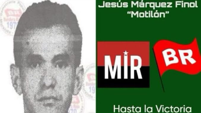 Jesús Márquez Finol, seudónimo Motilón, nació el 14 de agosto de 1936 en Cabimas, Estado Zulia, Venezuela 🇻🇪, es asesinado el 1 de marzo de 1973 en Caracas, Venezuela, fue un político, revolucionario y guerrillero, militó, en el Movimiento de Izquierda Revolucionario (MIR), posteriormente en Bandera Roja (BR).