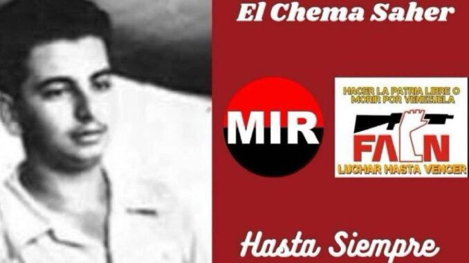 José Manuel Saher Eljuri, nació el 28 de junio de 1942, en Coro, estado Falcón, Venezuela 🇻🇪, es asesinado el 23 de marzo de 1967, por agentes de la Digepol, tenía 25 años de en ese momento, todos lo llamaban el Chema Saher, fue un político, luchador social, revolucionario y guerrillero venezolano.