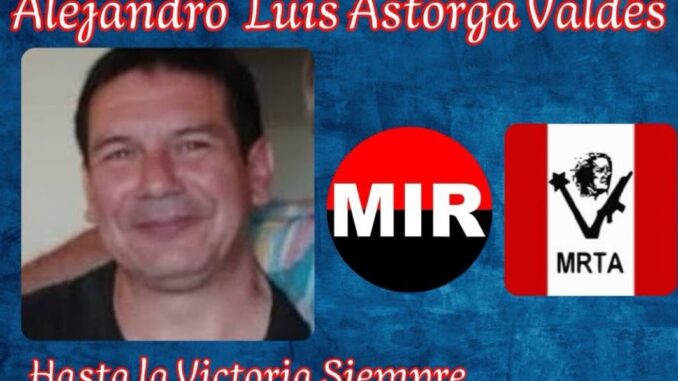 Alejandro Luis Astorga Valdés, nació en 1970, en Chile 🇨🇱, en fallece el 1 de enero de 2025, en Santiago de Chile, Chile 🇨🇱 su tierra natal, a los 55 años de edad, fue un político, luchador social, internacionalista, revolucionario y guerrillero chileno.
